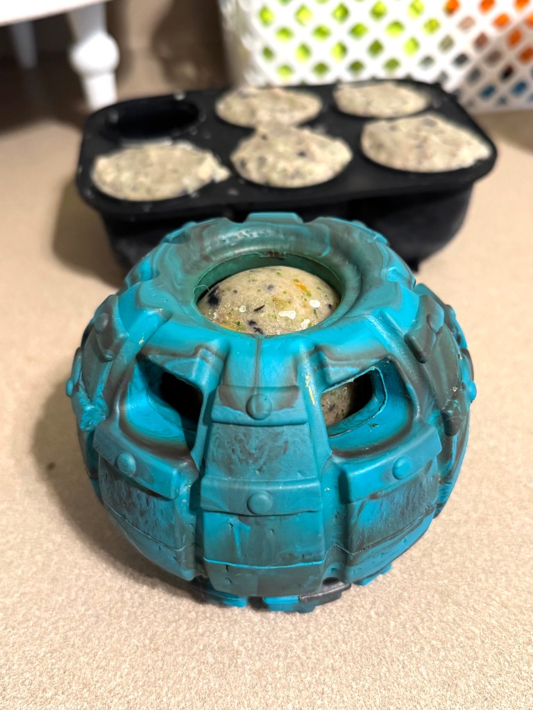 - Pour into silicone molds — paw and bone shapes are extra cute, but anything works.